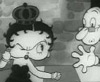 Betty Boop is the black queen and Bimbo the white king in a surrealistic chess game.
