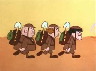 The Three Stooges are soldiers hiking through the desert. Their sergeant eats a gourmet lunch in front of them and orders them to go behind enemy lines. They start digging in the sand, and end up inside the enemy's underground lair. They find out about a secret bomb they are working on, and have to make it back to tell the sergeant.