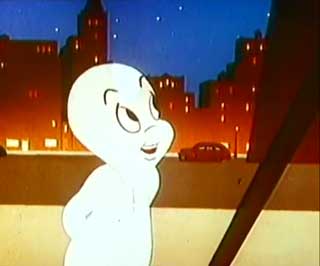 A flood of people come running out of the subway, only to be followed by Casper. He tries to do things humans would do, but they run away. He finally decides to fly up to the moon by himself. At first, he thinks it is void of life, but he encounters a race of aliens who try to imprison him.