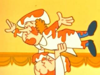 The stooges are helping a master painter paint a mural up high on some scaffolding. He leaves them in charge while he is gone, and only bad things begin to happen.