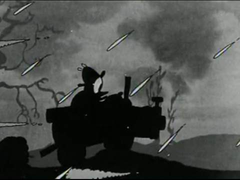 Inside a dark and creepy house, the shadow of a figure lurks. The clock strikes midnight, and the cuckoo comes out to announce it. As it does, someone shoots it. The clock itself picks up the phone to call an investigator. The investigator turns out to be Flip the Frog. He accepts the case and packs his stuff to journey through the dark and rainy night to the scene of the crime.