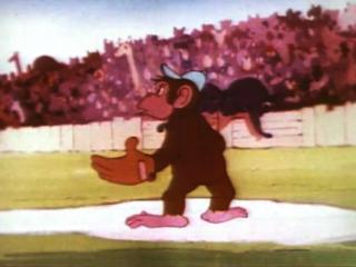 At the zoo, the animals have all gone to play baseball. Animals fill the stands as they watch the antics that can only come about from exotic animals who play baseball.